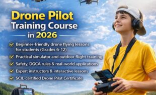 Join the Drone Pilot Training Course at SCIL India to learn real-world drone flying through hands-on simulator and live sessions. Designed for beginners and school students, this course covers safety, controls, aerial photography, and certification to boost future tech skills and career opportunities. Why SCIL ? Beginner-friendly drone flying lessons for students (Grades 6-12) Practical simulator and outdoor flight training...