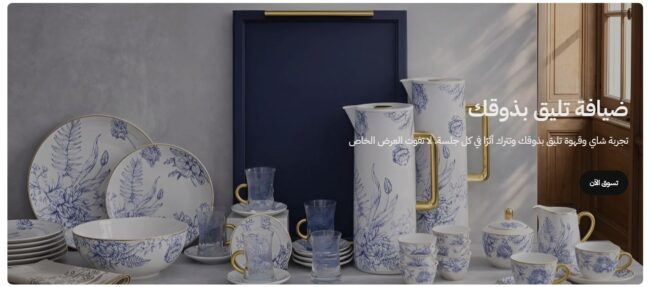 أطقم قهوة وشاي فاخرة، وأدوات مائدة، ولوازم الضيافة المنزلية الأساسية