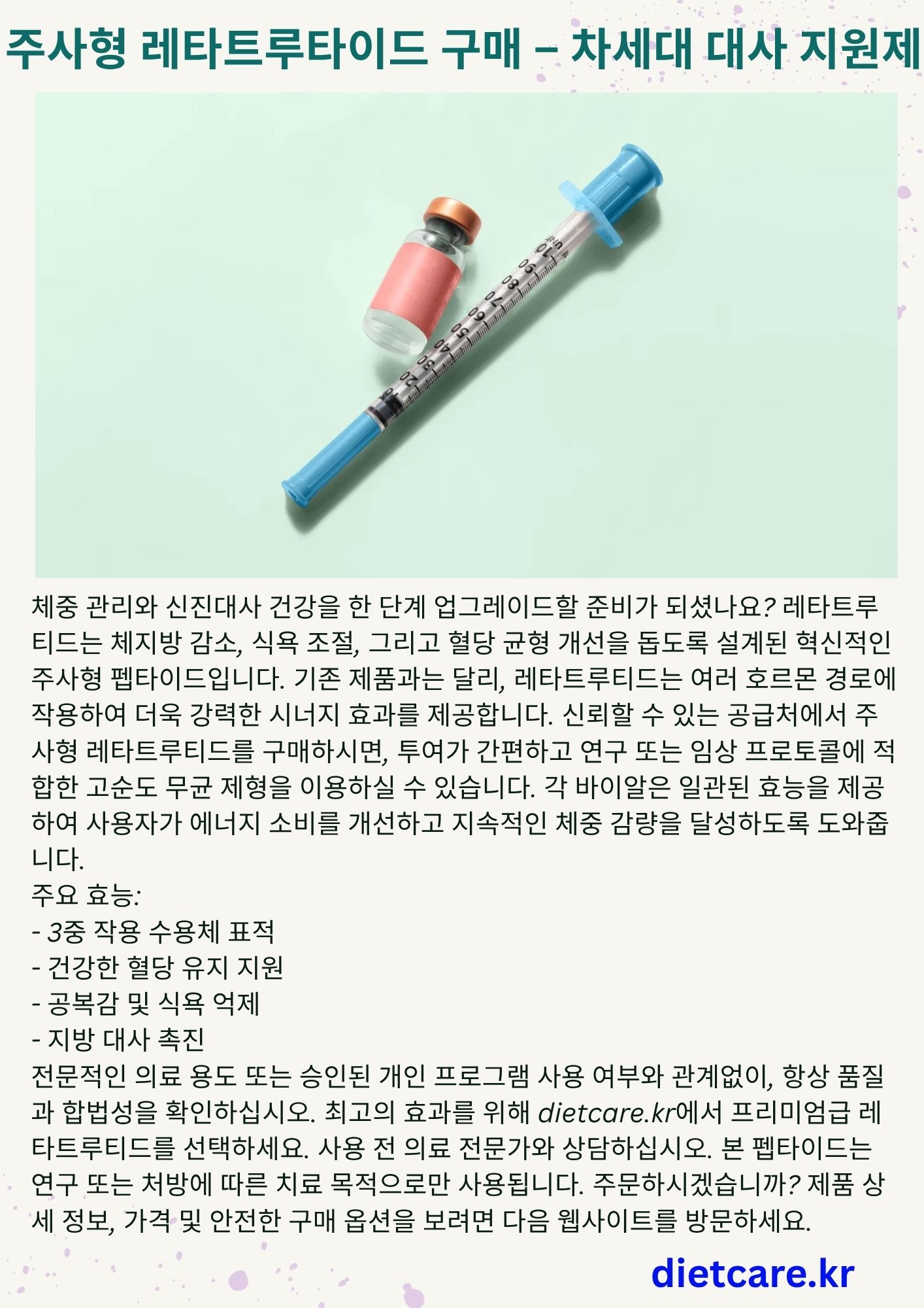 주사형 레타트루타이드 구매 – 차세대 대사 지원제