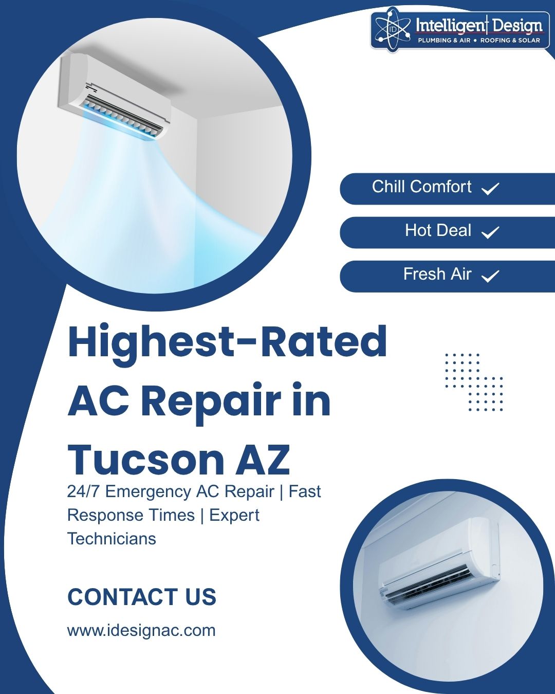 Struggling to find dependable ac companies tucson when your cooling system fails? Intelligent Design offers fast, reliable AC repair in Tucson, AZ with 24/7 emergency service. We quickly diagnose issues, restore comfort, and provide affordable, long-lasting solutions. Trust our experts to keep your home cool and energy-efficient without breaking your budget.