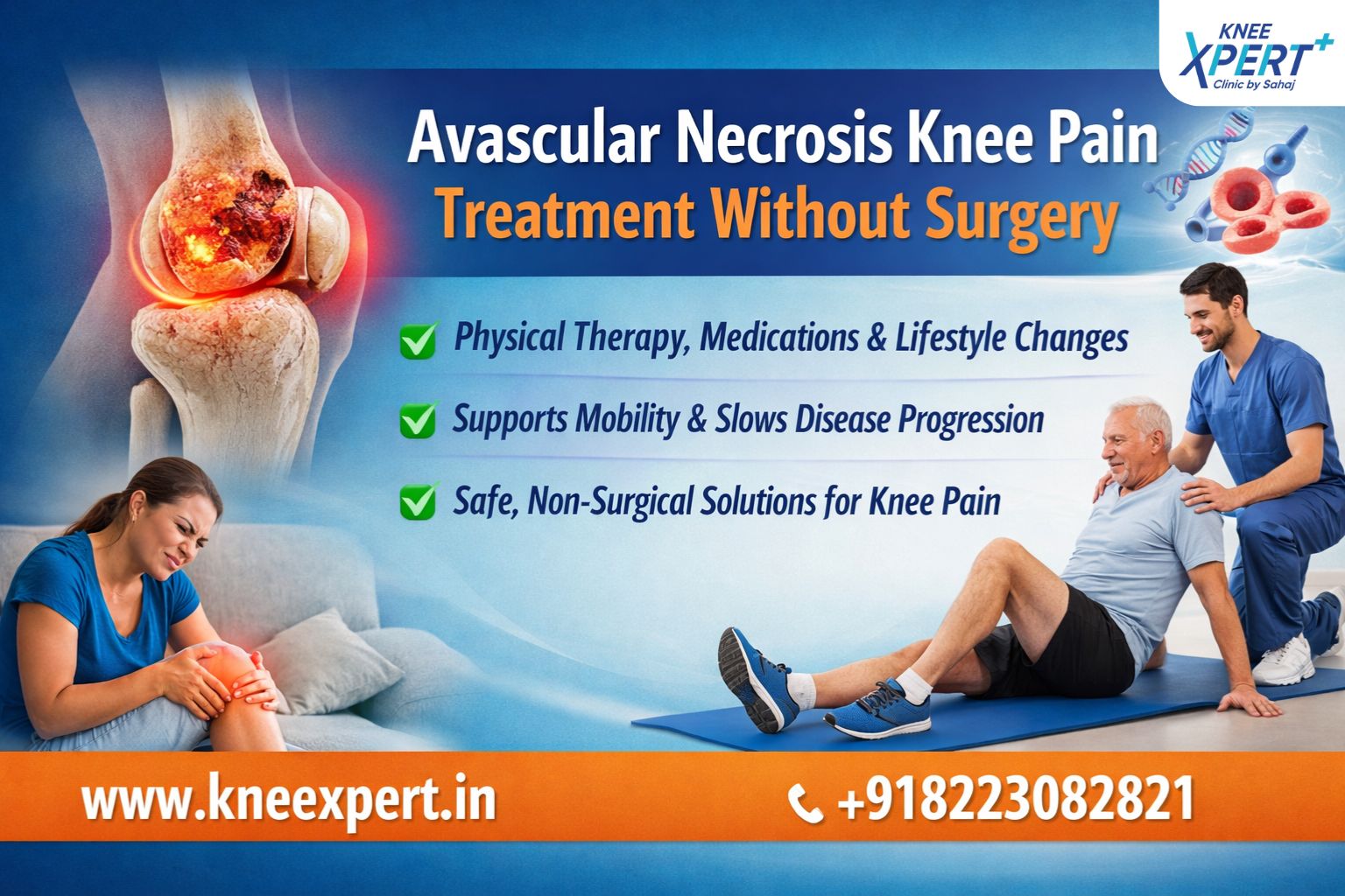 Avascular necrosis knee pain treatment without surgery focuses on advanced regenerative and cell-based healing methods. This modern biological approach helps reduce pain, improve joint mobility, and support natural tissue repair. It is minimally invasive with faster recovery and long-lasting relief. Ideal for patients seeking safe, natural, and surgery-free knee pain solutions.