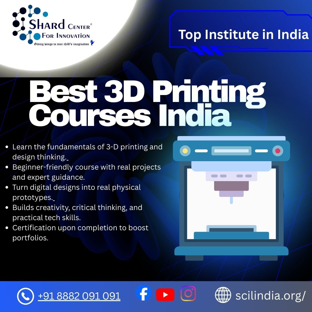 Discover best 3D printing courses India at Shard Center for Innovation, a Top institute for 3D printing offering beginner-friendly learning that blends 3-D printing with design thinking. Learn digital modeling, hands-on printing, and creative problem-solving to turn ideas into real objects, and start your innovation journey today.