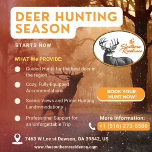 If you’re searching for the best hunting lodge in Georgia, look no further than The Southern Residence — where southern hospitality meets world-class hunting adventures. Nestled in the heart of Dawson, Georgia, The Southern Residence offers hunters and outdoor enthusiasts an unforgettable experience surrounded by nature, comfort, and tradition. 🏕️ Experience Luxury and Adventure in One Place At The Southern Residence Hunting Lodge, we combine the thrill of the hunt with the warmth of home. Whether you’re here for deer hunting, quail hunting, or simply to unwind in the peaceful Georgia countryside, our lodge provides the perfect setting. Our guests enjoy: Spacious and comfortable accommodations Guided deer and quail hunts Private hunting grounds with abundant wildlife Southern-style meals prepared with care Campfire evenings and camaraderie with fellow hunters Every stay at The Southern Residence is designed to deliver a balance of adventure and relaxation — ideal for individuals, families, or corporate hunting retreats. 🎯 The Best Hunting in Georgia Georgia is known for its rich wildlife and premier hunting lands, and The Southern Residence sits right in the middle of it all. Our guided hunts are tailored for both novice and seasoned hunters, ensuring everyone enjoys the best possible experience. We specialize in: Deer Hunting: Trophy whitetails and unforgettable hunts. Quail Hunting: Classic southern quail hunts with professional guides and well-trained dogs. Seasonal Game Adventures: From small game to turkey, experience it all in one place. With acres of carefully managed hunting land, The Southern Residence offers a safe, ethical, and rewarding hunting experience that keeps guests coming back season after season. 🏡 Why Choose The Southern Residence? Here’s what makes us the top-rated hunting lodge in Georgia: ✅ Expert local guides with years of experience ✅ Comfortable lodging and southern-style meals ✅ Customized hunting packages for all skill levels ✅ Excellent location in Dawson, GA ✅ Perfect for solo hunters, families, or corporate groups We take pride in offering more than just a hunting trip — we deliver a complete Georgia hunting experience. 📍 Visit Us in Dawson, Georgia The Southern Residence📍 Address: 7463 W Lee St, Dawson, GA 39842, US📞 Call: +1 (516) 273-5500🌐 Website: https://thesouthernresidence.com/ Plan your next Georgia hunting adventure with us and experience the perfect mix of outdoor excitement and southern comfort. 🔥 Book Your Hunting Trip Today Spots fill up fast during peak hunting season!Whether you’re planning a deer hunt, quail hunt, or a weekend retreat, The Southern Residence Hunting Lodge in Georgia promises an experience you’ll never forget.
