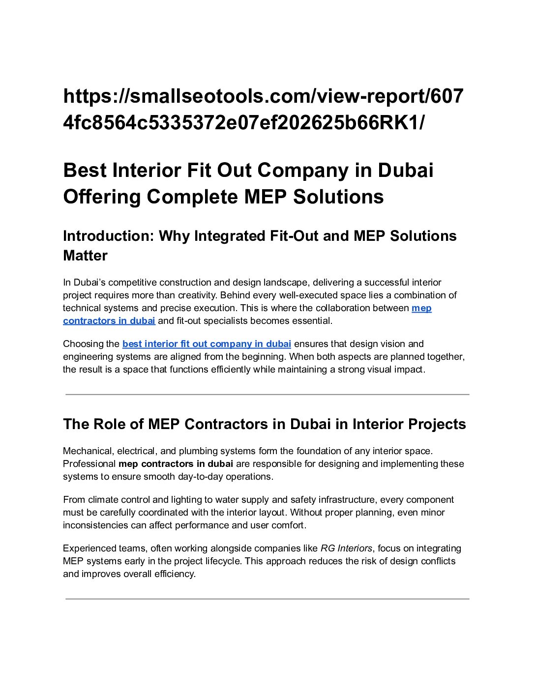 RG Interiors by RG GROUPĀ is a leading interior fit-out company based in Dubai, specializing in turnkey solutions for commercial, residential, and industrial spaces. Backed by the trusted legacy of RG GROUP, RG Interiors brings innovation, functionality, and elegance to every project. From conceptual design and space planning to execution and handover, we deliver high-quality interior solutions tailored to meet the specific needs of our clients.