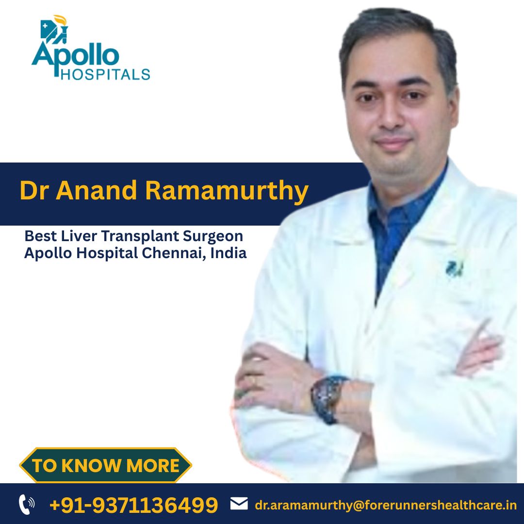 Dr. Anand Ramamurthy is a highly respected liver transplant surgeon known for his expertise in managing complex liver diseases and end-stage liver failure. Practicing at Apollo Hospital Chennai, Dr. Anand Ramamurthy is a highly respected liver transplant surgeon known for his expertise in managing complex liver diseases and end-stage liver failure. To Know More:- Call us:- +91-9371136499 Email us:- dr.aramamurthy@forerunnershealthcare.in