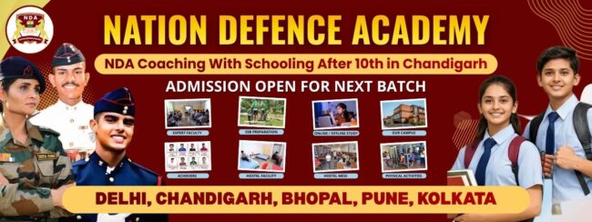 Step into a defence career with the best NDA coaching with schooling after 10th in Chandigarh at Nation Defence Academy. We offer integrated academic schooling with expert NDA preparation, hostel & library facilities for boys & girls, physical training, and SSB guidance.
