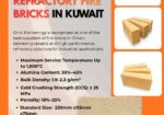 Oniir Marketings supplies high-quality fire bricks in Kuwait, suitable for use in industrial applications, made of refractory materials to maintain consistent performance at high temperatures and tough conditions. The manufacture of the bricks is done using the highest grade of refractory material, which normally contains up to 30% to 80% alumina and has a density of 1.8-2.4g/CM3. The fire bricks possess a cold crushing strength of 20-40 MPa. With such qualities as temperature resistance up to 1400-1600°C, size is 230mm x115mm x75mm, and very low thermal conductivity, the fire bricks can retain heat excellently. Our fire bricks in Kuwait are extensively used in various industrial applications such as furnaces, kilns, boilers, incinerators, and the metallurgical industries, among others.