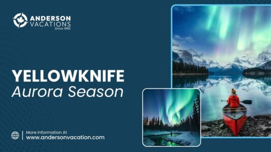 Are you looking for the best Yellowknife Aurora season? Anderson Vacations shows the ideal months for seeing the Northern Lights. From late summer to early spring, enjoy long nights, clear skies, and stunning aurora views for an unforgettable experience.