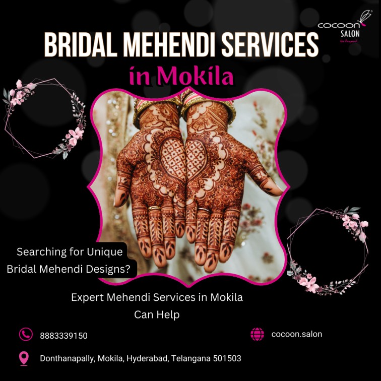 Make your wedding celebrations special with professional bridal mehendi services in Mokila at Cocoon Salon. Our experienced mehendi artists design intricate bridal patterns using quality henna to create rich color and elegant designs for your big day.