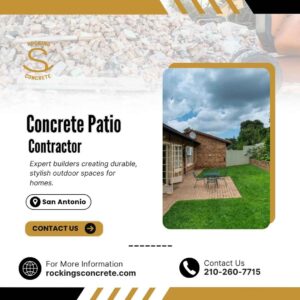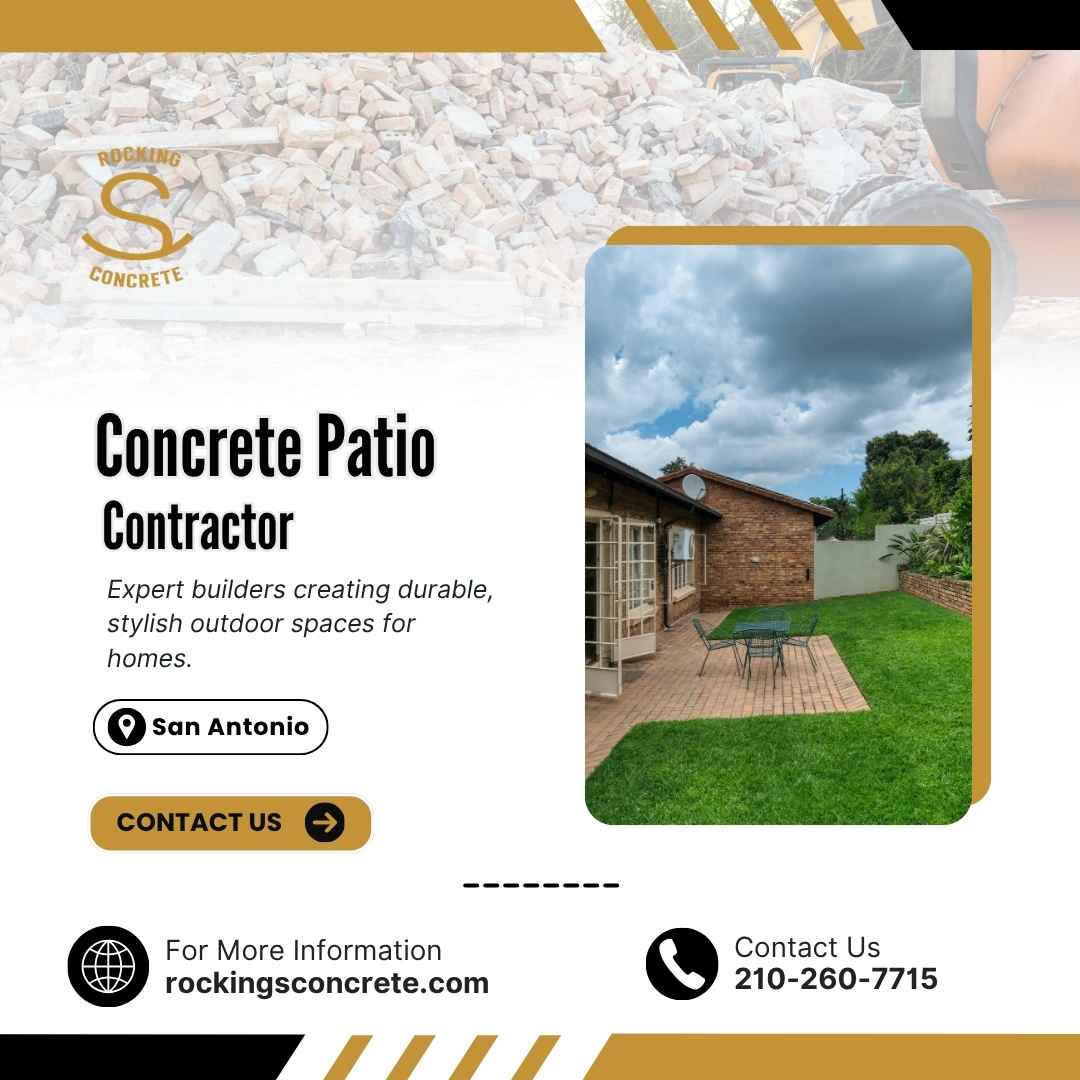 Designing a functional and attractive patio requires skill and attention to detail. Rocking S Concrete stands out as a trusted concrete patio contractor in San Antonio, delivering custom solutions built for durability and appeal. Our team ensures proper finishing and strength. Call now to start creating your perfect outdoor living area.