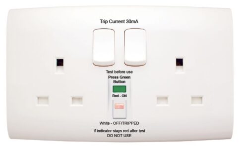 Buy Contactum ALF4900WHW 13A RCD socket, 2 gang, BS 7288, white polycarbonate, wall mount, switched, IP2X, 220–250V. Ideal for residential & commercial use.