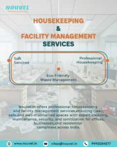 Nouvel offers professional corporate housekeeping services designed to create clean, safe, and productive work environments. With an expert team and advanced cleaning technology, we ensure high hygiene standards for offices, industries, and commercial facilities across Delhi, Noida, Haryana, Punjab, and Mumbai. Our tailored housekeeping solutions help businesses maintain spotless workplaces, boost employee morale, and enhance operational efficiency. As one of India’s trusted facility management providers, Nouvel focuses on sustainable cleaning practices and customer satisfaction. 📞 Contact us today! Visit us: 9990034577