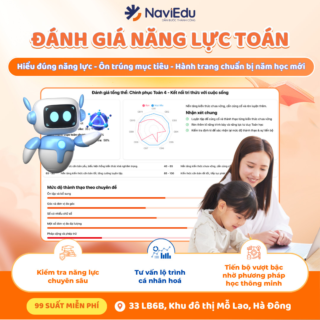 Đánh giá Toán của bạn với bài kiểm tra Adaptive Testing độc quyền của NaviEdu. Nhận ngay báo cáo năng lực chi tiết, xây dựng lộ trình học tập cá nhân hóa, phát hiện và đánh giá năng lực của học sinh với từng điểm kiến thức.
