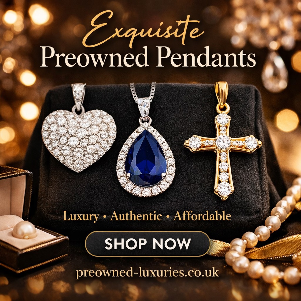 Explore a stunning collection of preowned luxury pendants at Preowned Luxuries UK. Each piece is carefully curated for quality, authenticity, and timeless style. From diamond pendants to gold and gemstone designs, find elegant accessories that match your personality – all at affordable preowned prices. Perfect for gifts or personal style upgrades. Why choose our pendants: – 💎 High-quality luxury pieces – diamonds, gold, and gemstones – ♻️ Sustainable fashion – eco-friendly and preowned – 🎁 Perfect gifts – ideal for anniversaries, birthdays, or special occasions – 💷 Affordable luxury – own a designer piece without breaking the bank – 🛍️ Verified authenticity – all pendants come with certification ✨ Elevate your jewelry collection with timeless elegance today. Browse our exclusive range of preowned pendants and find a piece that tells your story—luxury, authenticity, and sustainability all in one place. Shop now and shine with confidence. ✨