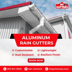 Overflowing gutters allow rainwater to seep behind walls and damage your home’s exterior. Aluminum rain gutters in San Antonio provide a durable, rust-resistant solution that prevents leaks and ensures proper drainage. MT Gutters offers professional installation you can rely on. Book your appointment today!