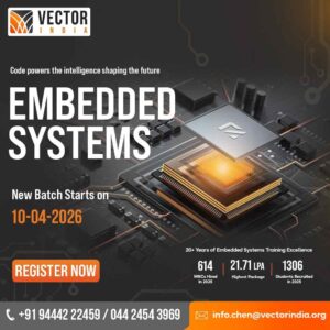 Learn the Logic Behind Intelligent Devices Vector India is a premier Embedded Systems training institute with over 20+ years of excellence in delivering industry-oriented, placement-focused technical education. Our Embedded Systems program is designed to bridge the gap between academic learning and real-world industry requirements, empowering engineering graduates to build successful careers in core and product-based companies.