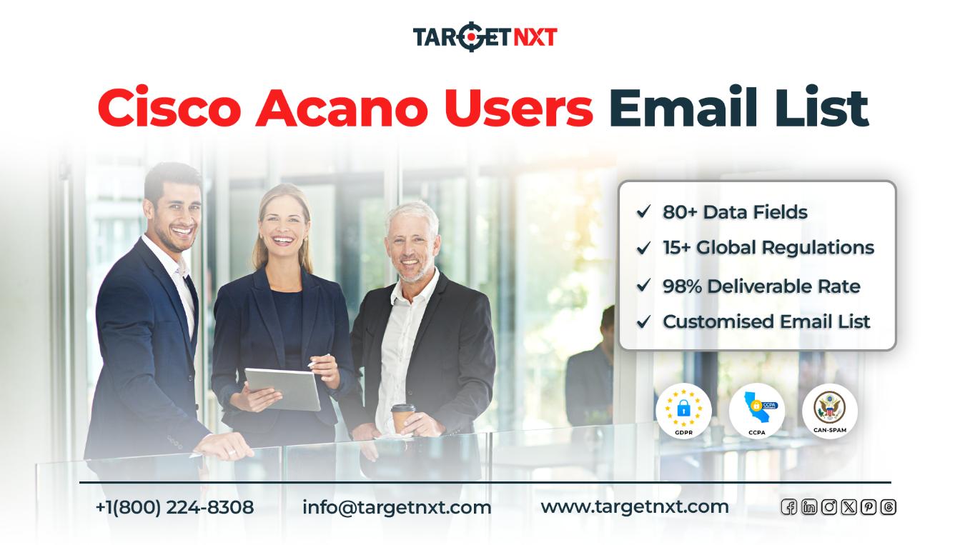 Maximizing your business growth by targeting Cisco Acano Users becomes simple and easy with TargetNXT’s Cisco Acano Users Email List. So why delay? Equip your B2B business with our email list and streamline your entire outreach process by getting a Vip pass for building connections with Cisco Acano Users from top companies that use Cisco Acano.