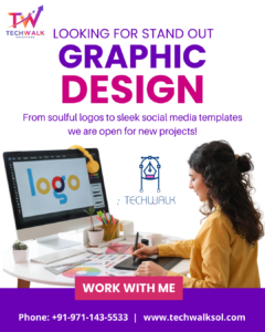 Techwalk Solutions builds brands that hold their ground. From the first logo sketch to a full visual identity, our design work is deliberate, sharp, and built for real-world impact. Businesses across India come to us when they need a graphic design company in India that understands business – not just aesthetics. For more information, call us at +91 8360707838 or visit our website.