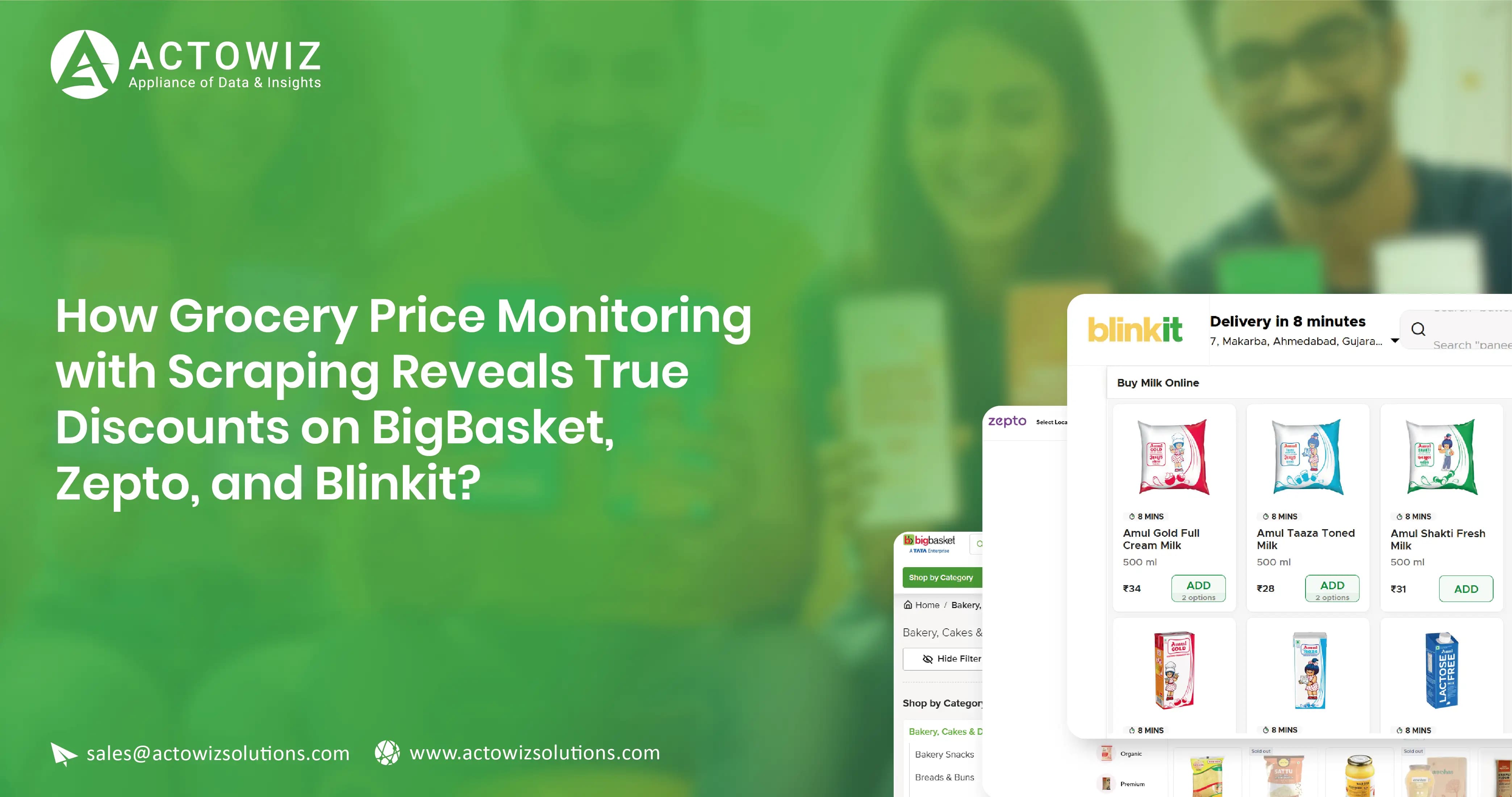 Discover how grocery price monitoring with scraping uncovers real discounts on BigBasket, Zepto, and Blinkit, helping you save money and make smarter shopping decisions.
