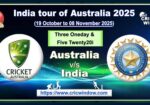 Australia will play at home three one-day international and five twenty20i matches series against India during 19th October to 08th November 2025. Australia vs India ODI series begins on 19th October 2025. 1st One-day international will be host by Optus Stadium, Perth in series opener. Adelaide Oval, Adelaide will host 2nd ODI on 23rd October, 2025 and Sydney Cricket Ground will host 3rd one-day international on 25th October, 2025 in three ODI match series. Five match Twenty20 international series will begins on 29th October, 2025 at Manuka Oval, Canberra. 2nd t20i will be played on 31st October, 2025 at Melbourne Cricket Stadium. 3rd t20i will be host by Bellerive Oval Stadium, Hobart on 2nd November, 2025. Carrara Stadium, Gold Coast will host 4th t20i on 6th November, 2025 followed by 5th twenty20i will host by The Gabba Cricket Ground, Brisbane on 8th November, 2025 to end limited overs white ball cricket series between India and Australia.
