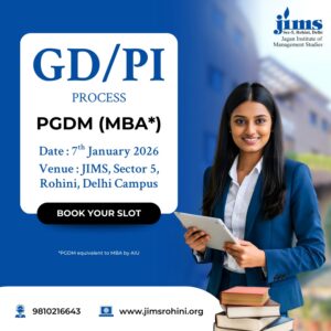 Step closer to your dream management career! ✨ Join the GD/PI Process for PGDM (MBA*) at JIMS Rohini, Delhi on 7th January 2026. Secure your seat and become part of one of Delhi’s leading B-Schools.