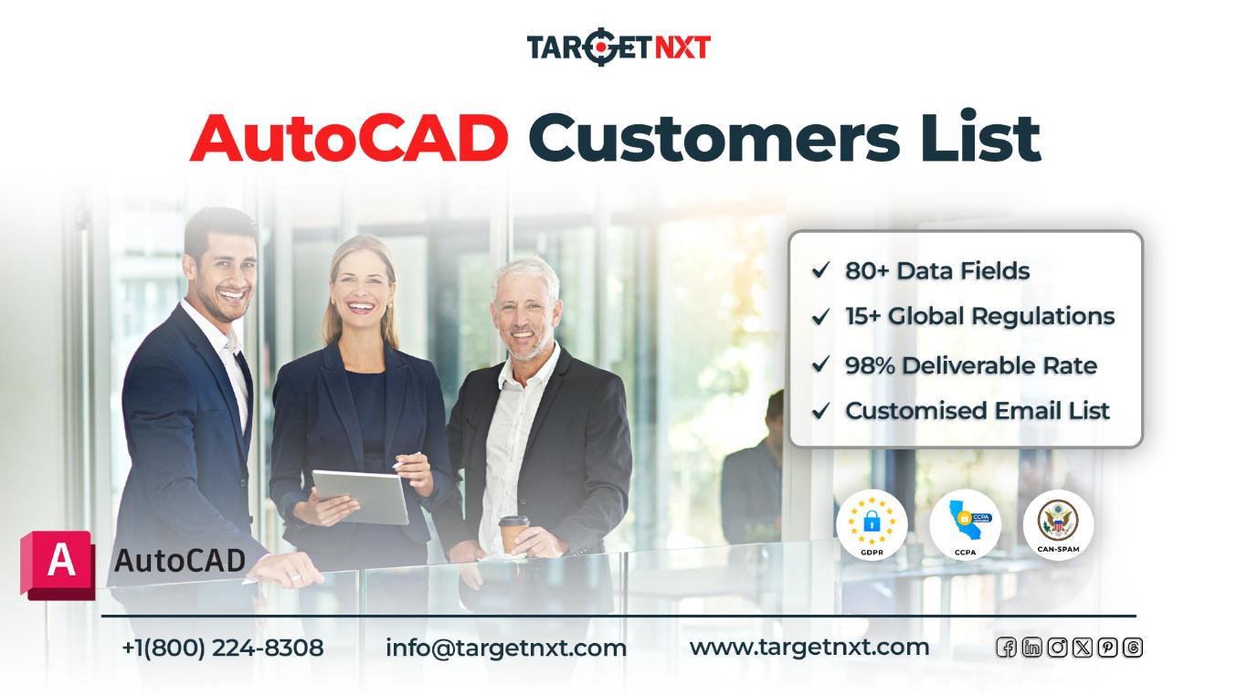 Join hands with TargetNXT’s AutoCAD Customers List if you are facing diffifculty to establish relationship with AutoCAD Users. Our email list is the best asset for businesses like yours assisting you the right way to reach out to professionals from companies that use AutoCAD across the markets of the USA, UK, Canada, Japan, etc.