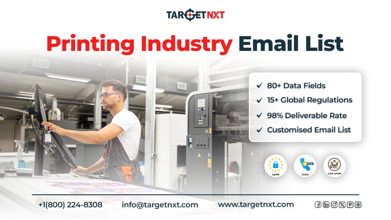 Expand your B2B outreach with TargetNXT’s Printing Industry Email List. Our email list connects you with printing professionals, suppliers, and business owners in commercial and digital printing sectors. Whether you offer raw materials, printing equipment, or software, our email list helps you generate high-value leads.