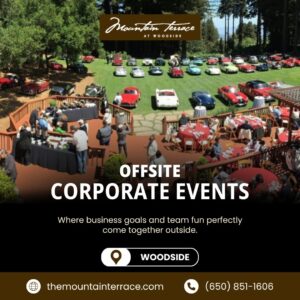 Scenic backdrops and open-air settings create the perfect atmosphere for gatherings. The Mountain Terrace at Woodside offsite corporate events in Bay Area offer a unique blend of nature, comfort, and elegance. Book today and make your next celebration unforgettable. Book venues today!