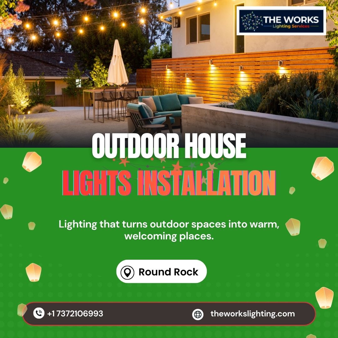 Even a beautiful home can feel uninviting if outdoor lighting is poor. During festivals or everyday evenings, good lighting makes a big difference. The Works Lighting Services specializes in outdoor house lights installation in Round Rock, creating bright, safe, and attractive outdoor areas. Schedule your installation today!