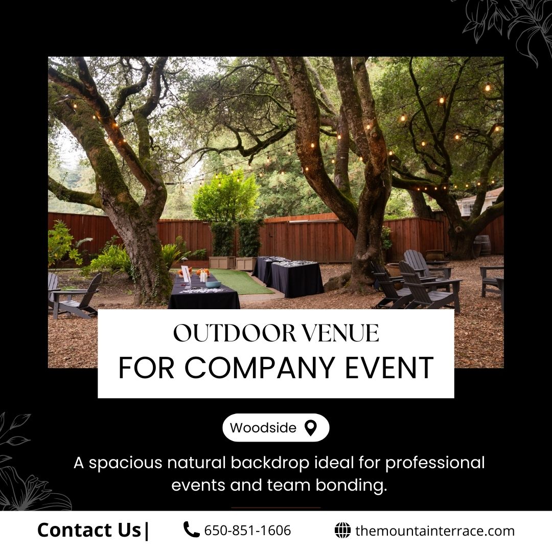 Planning outdoor company events often means dealing with weather risks, poor facilities, and logistics stress. At the Mountain Terrace at Woodside, our outdoor venue for company event in Bay Area offers reliable setups, full amenities, scenic views, professional support, and a comfortable experience that ensures your event runs smoothly. Reserve your venue now!