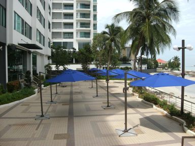 Patio umbrella Decon has a heavy duty cantilever umbrella for all commercial and residential grade, supplies to most of the hospitality industry as well as individual home owners for past two decades, our wide selection of umbrella comes with many colors and designs, sizes and functions, some comes with cantilever mechanism can tit and turn 360 degree can adjust any position, some side pols and some comes with middle pole, along with base resin or four pieces of marble slabs to holds the umbrella.