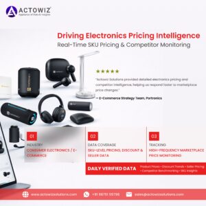 Portronics Electronics Pricing Intelligence Case Study | Actowiz Solutions -/1 by actowizsolutions Published: March 27, 2026 (4 weeks ago) Category Technology Link portronics-electronics-pricing-competitor-intelligence Actowiz Solutions delivered SKU-level electronics pricing and competitor intelligence for Portronics across major e-commerce marketplaces.