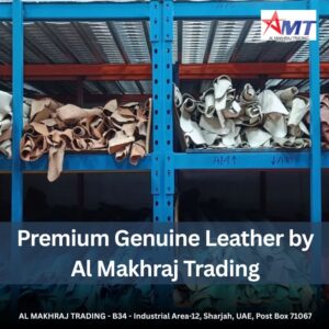 Al Makhraj Trading is a renowned supplier of premium genuine leather, serving manufacturers, designers, and craftsmen across South Africa and the UAE. Known for superior quality and long-lasting durability, we deliver carefully sourced leather that meets the highest standards of craftsmanship. Our wide range includes full-grain, top-grain, nubuck, suede, and specialty leathers, ideal for footwear, upholstery, fashion accessories, automotive interiors, and custom leather applications. From small workshops to large manufacturers, Al Makhraj Trading guarantees consistent supply, reliable service, and premium materials that enhance every finished product. Contact Us: (+971)-55-312-0100 Address: AL MAKHRAJ TRADING B34 – Industrial Area-12, Sharjah, UAE, Post Box 71067