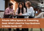 Comparison between coworking desks and private office space in Noida Sector 63. To facilitate a professional working environment, we offer fully furnished cabins, 24/7 access to work, meeting rooms, and modern facilities. We target startups, SMEs and enterprises that need a secure, productive and flexible workspace in our private offices. TC CoWorks Space is situated in the very business-friendly Noida, which is also provided with high-speed internet, ergonomic seating, housekeeping, and power backup to provide your team with all they require to concentrate on growth. Call us on +91 7042323434