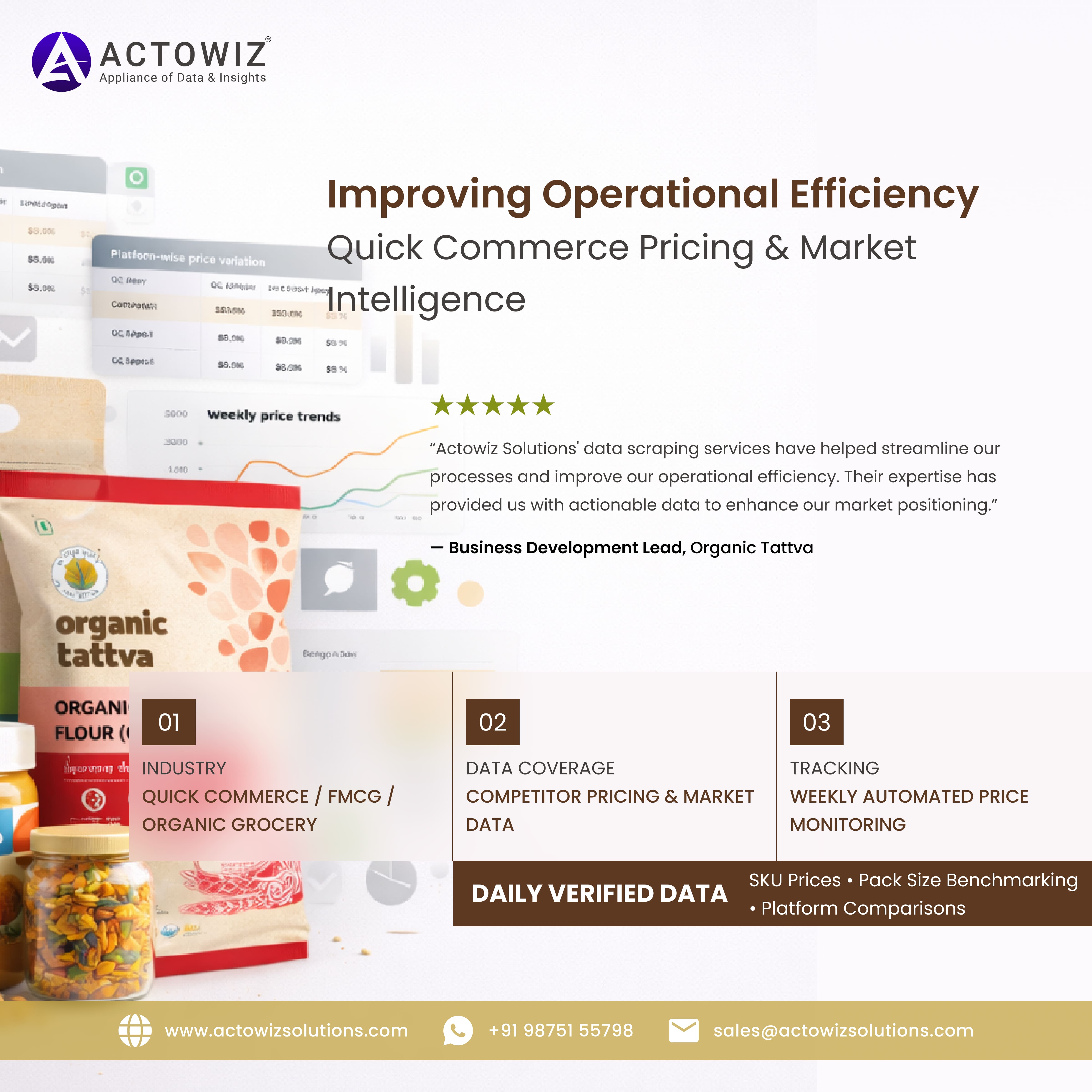 Actowiz Solutions helped Organic Tattva improve operational efficiency by 3x using weekly competitor pricing feeds across quick commerce platforms.