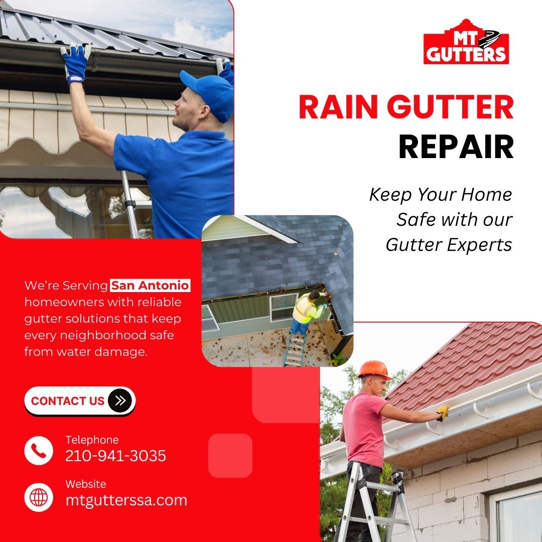 Heavy rains often leave gutters cracked, clogged, or leaking, leading to costly home damage. MT Gutters delivers expert rain gutter repair in San Antonio to protect your home and prevent future issues. Trust our experienced team for the seamless flow of your gutters. Schedule your gutter repair today!