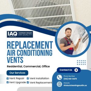 Worn or damaged AC vents can limit airflow and reduce comfort throughout your home. IAQ Austin – Air Duct Cleaning provides professional replacement air conditioning vents in Austin to improve air distribution, enhance system efficiency, and refresh your interior spaces. Restore balanced airflow and comfort by scheduling your vent replacement service today.