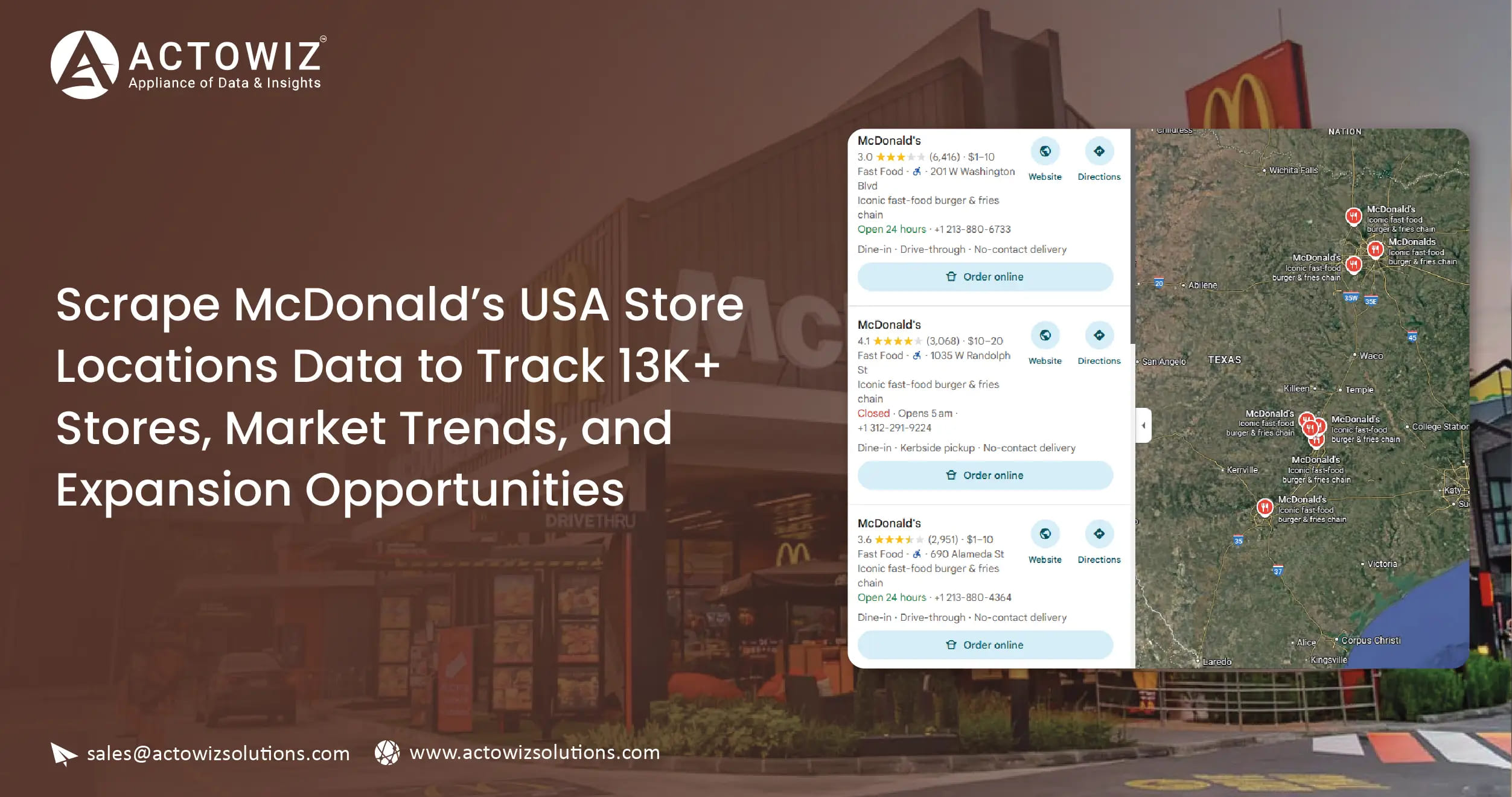 Scrape McDonald’s USA Store Locations Data to track 13K+ stores, analyze market trends, uncover expansion opportunities, and optimize site selection strategies.