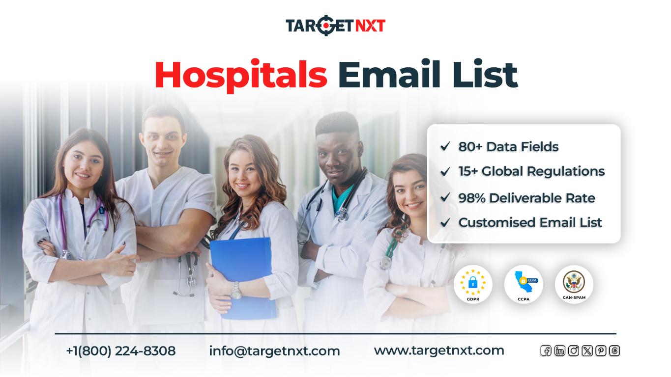 Use TargetNXT’s accurate and authentic Hospitals Email List to connect with your “targeted professionals” from the world’s leading hospitals for initiating profitable business connections. Lay hands on our data validated and verified by both automated tools and expert scrutiny ensuring higher conversion, ROI, and profits for your business.