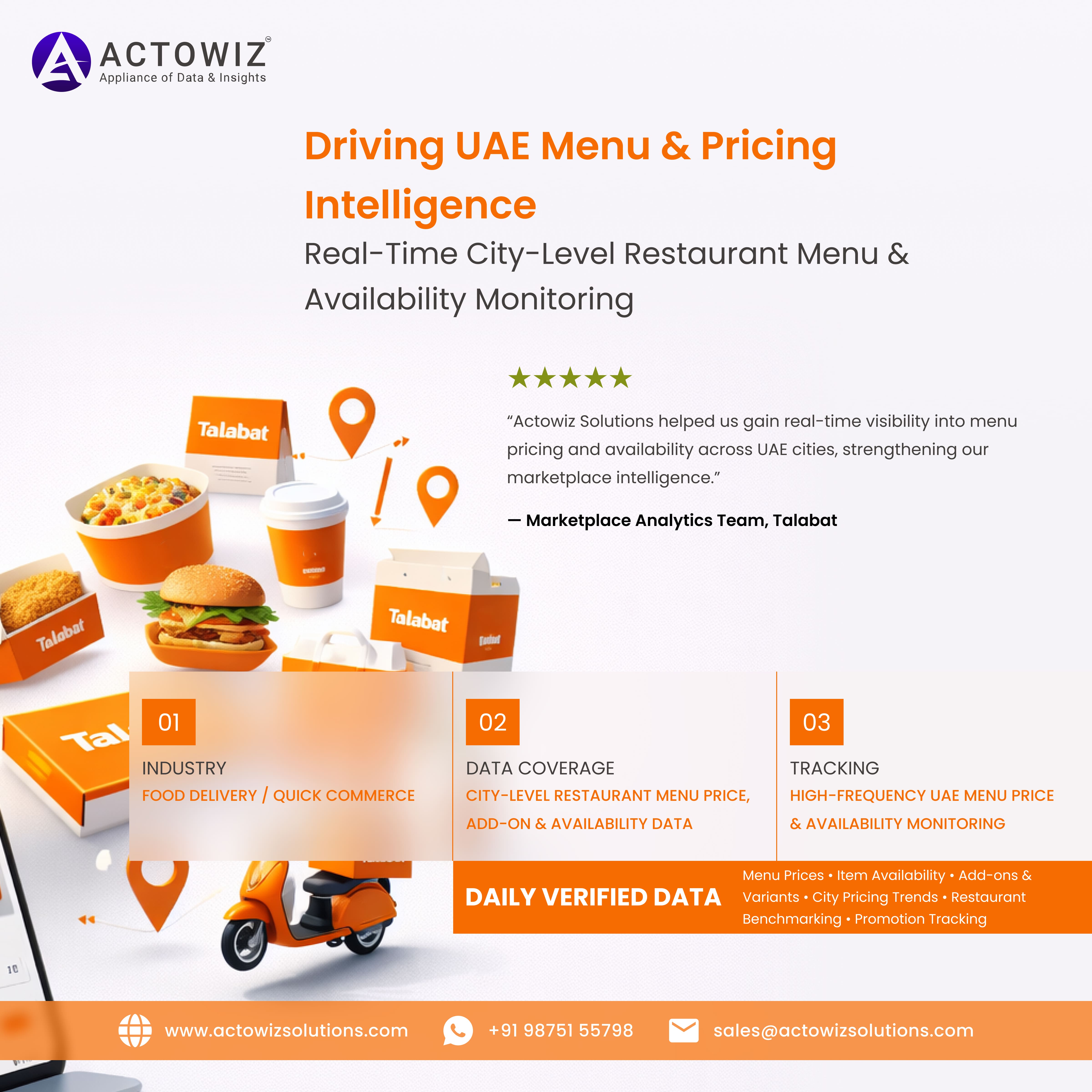 Actowiz Solutions delivered real-time restaurant menu pricing and availability intelligence for Talabat across UAE cities.