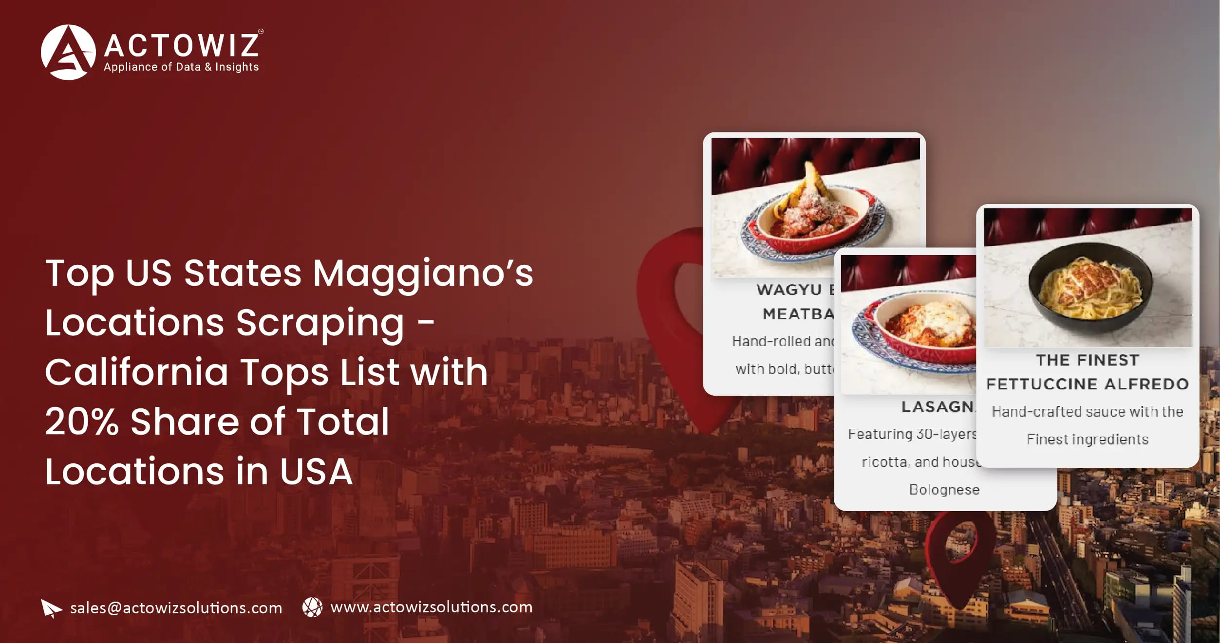 Explore the Top US States Maggiano’s Locations Scraping as California leads with 20% of total Maggiano’s Little Italy restaurants in the USA.
