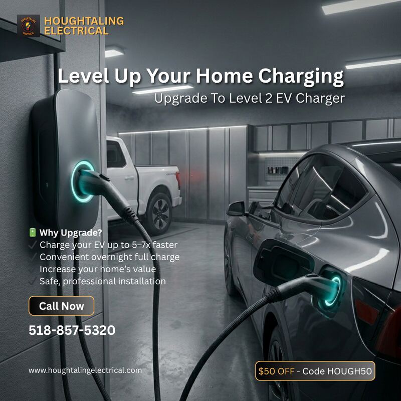 Tired of waiting 15 – 20+ hours to charge your electric vehicle? It’s time to upgrade to a Level 2 EV Charger and enjoy fast, efficient charging right from your garage. At Houghtaling Electrical, we provide professional EV charger installation for homeowners across Albany and surrounding areas. Why Choose a Level 2 Charger? Charge up to 5-7x faster than standard outlets Full overnight charge for daily convenience Safe, code-compliant installation Increase your home’s value & efficiency Our Services Include: • Level 2 EV Charger Installation • Electrical Panel Upgrades (if needed) • Dedicated Circuits for Safe Charging • Licensed & Insured Electricians Don’t risk slow charging or unsafe setups – trust the experts to get it done right. CALL NOW for a FREE Quote! LIMITED TIME OFFER: Get $50 OFF with code HOUGH50 Proudly Serving Albany, NY & Surrounding Areas Fast. Safe. Reliable EV Charging Starts Here. https://houghtalingelectrical.com/