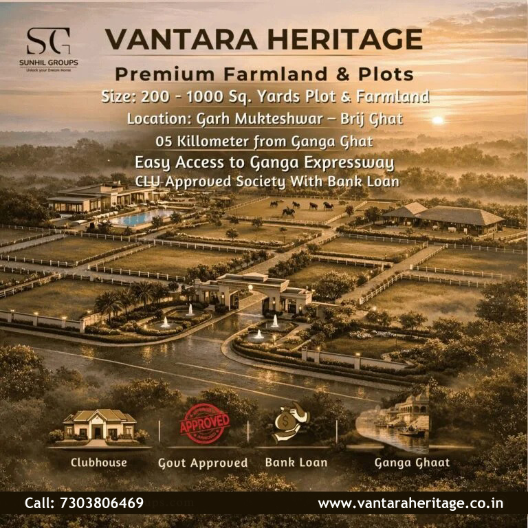 Vantara Heritage is a premium villa plot project located in the spiritually significant region of Garhmukteshwar, near Garh Ganga Ji. With a secure gated community, thoughtfully planned layout, and lifestyle amenities, the project ensures safety, comfort, and lasting value.