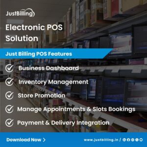 Managing an electronics store becomes simple and efficient with an electronic POS solution like Just Billing. This smart system helps retailers handle billing, stock, and payments in one place without the usual paperwork or confusion. With automated processes, every sale is recorded accurately, giving you complete visibility over your business performance.