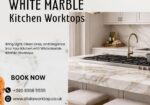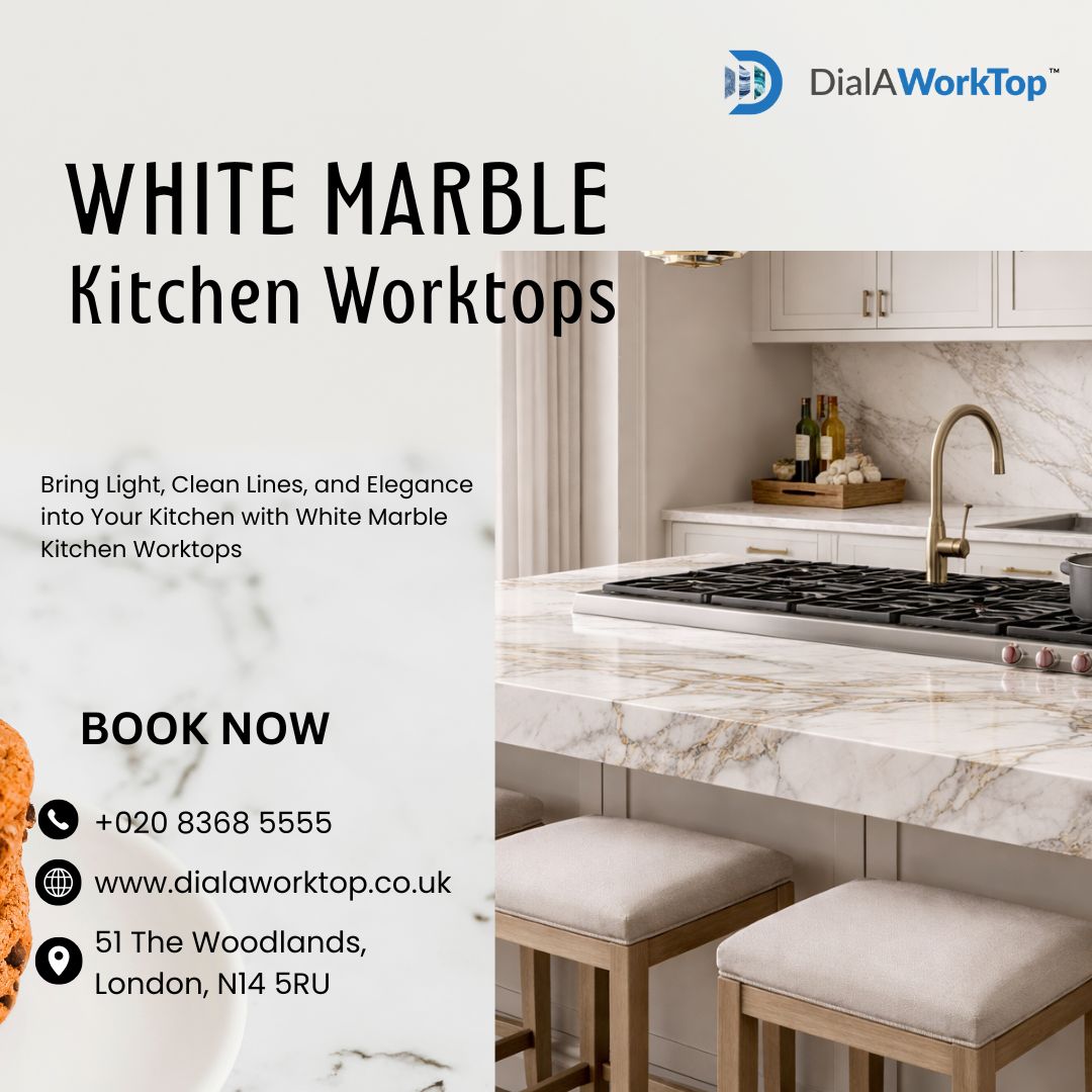 Bring sophistication to your kitchen with white marble worktops from DialAWorkTop. These premium surfaces feature natural veining and a bright finish that complements modern and classic designs. Our expert installation ensures durability, precision, and a flawless result every time.