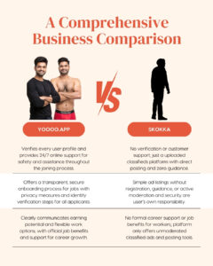 If you’re considering entering the male industry in Kolkata, choosing the right platform is crucial. Between Yoooo.App and Skokka, Yoooo.App clearly stands out as the superior choice. With its sleek mobile-optimized interface, multi-step profile verification, global client reach, and secure payment options like UPI and crypto, it offers unmatched professionalism and earning potential. Unlike Skokka’s outdated design and limited reach, Yoooo.App ensures privacy, flexibility, and 24/7 support, making it ideal for who want safe, profitable, and long-term opportunities. For success and growth in the industry, Yoooo.App is the platform to trust.