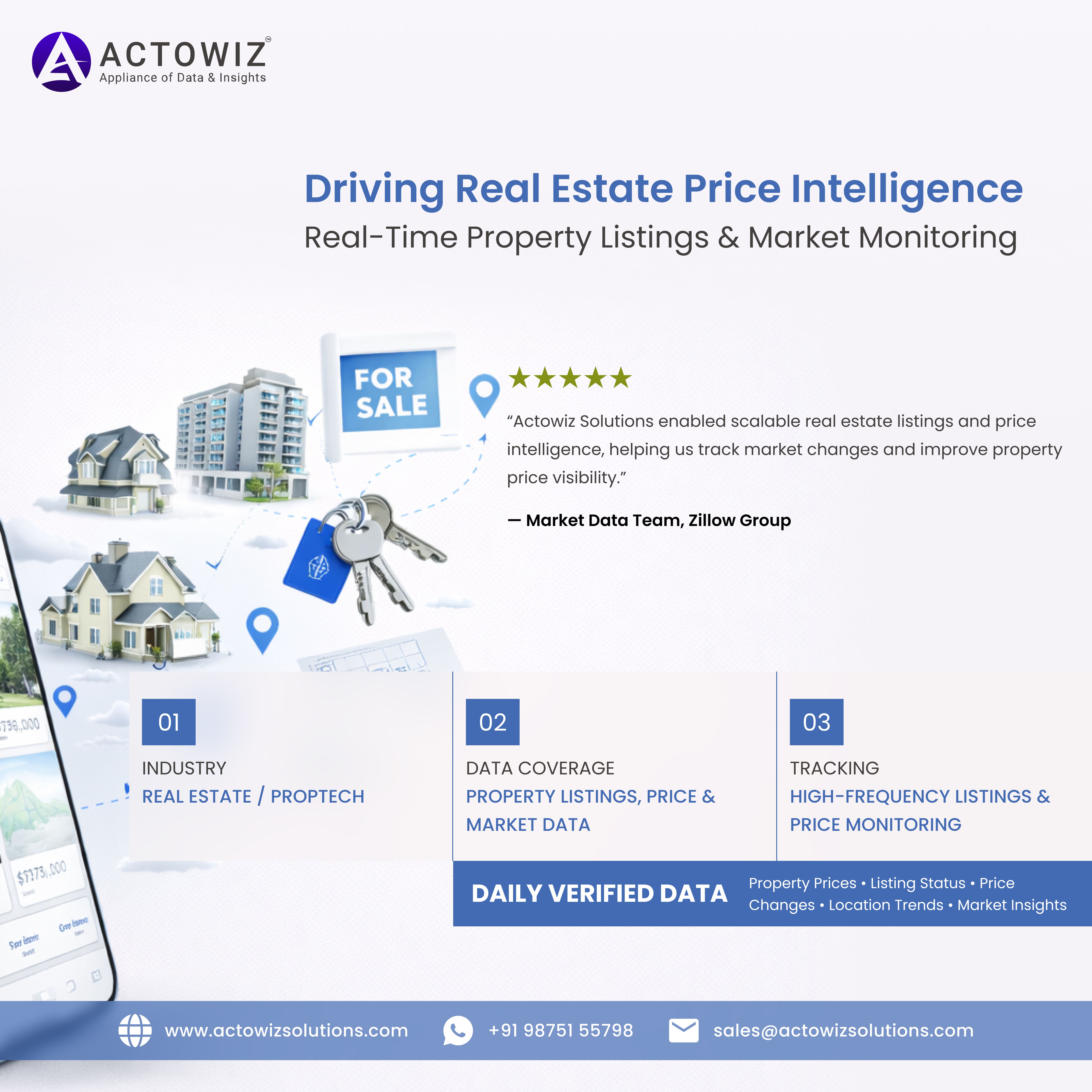 Actowiz Solutions enabled large-scale real estate listings and price intelligence for Zillow Group, supporting market trend analysis and pricing visibility.